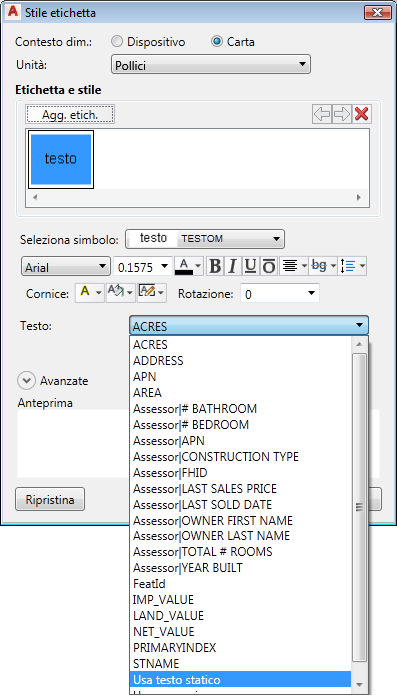 Per stabilire il testo delle etichette è possibile utilizzare un'espressione.