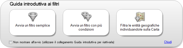 Per impedire che i pulsanti di avvio vengano visualizzati ogni volta che si crea un'espressione, selezionare la casella di controllo Non mostrare all'avvio. È possibile visualizzarli nuovamente in seguito facendo clic su Introduzione.