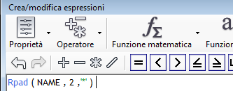 Se ad esempio si completa il lato destro di una stringa di testo con tre asterischi, la sintassi dell'espressione sarà simile alla seguente: