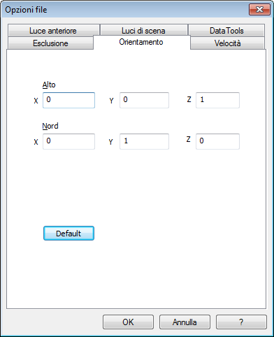 , immettere i valori necessari a modificare l'orientamento del modello.