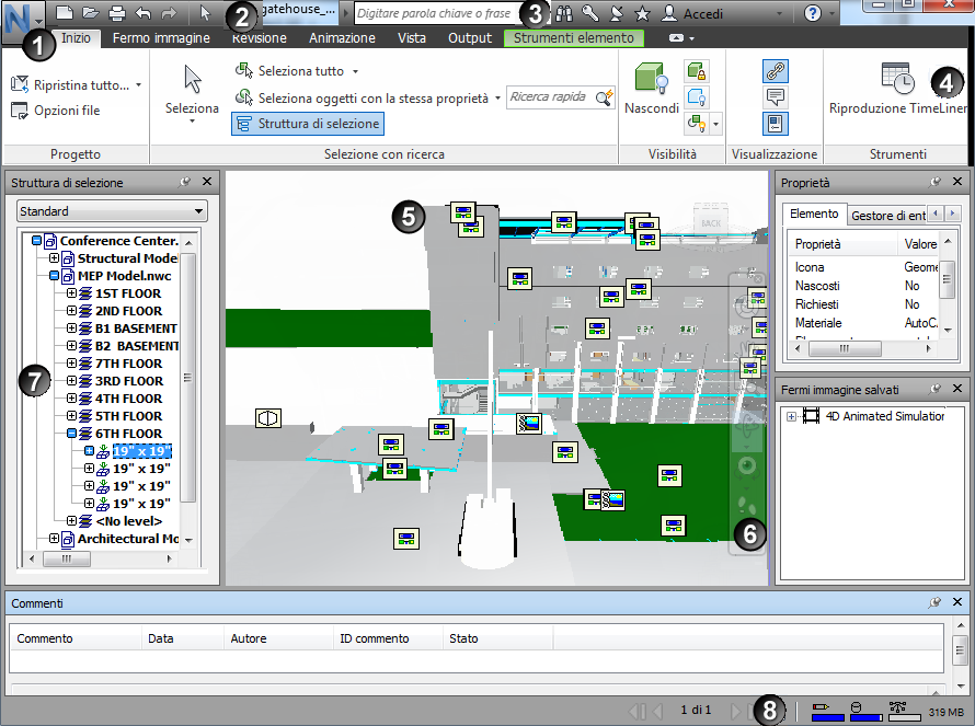 In questa sezione vengono descritti brevemente i componenti principali dell'interfaccia standard di Autodesk Navisworks.