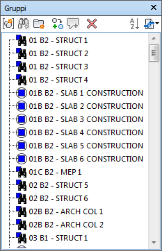 È possibile utilizzare i pulsanti nella finestra Gruppi per creare e gestire gruppi di selezione e di ricerca nel file di Autodesk Navisworks.