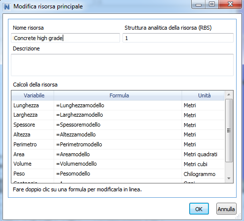 Le risorse principali sono i valori originali di riferimento delle risorse per il catalogo del progetto. È possibile apportare modifiche alle risorse principali nel Catalogo elementi. Le modifiche apportate vengono applicate solo alle nuove risorse.