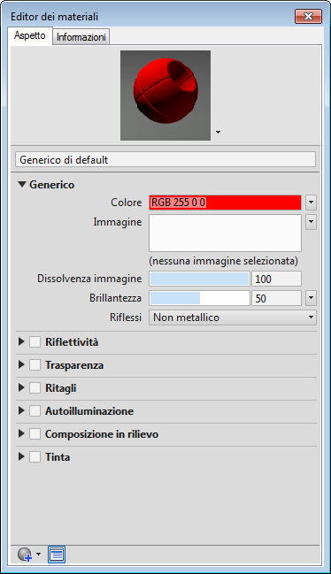 Contiene i controlli per la modifica delle proprietà dei materiali.