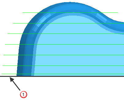 Cusp height — Use this setting to specify the stepdown so that the height of the material left between Z Heights does not exceed the Cusp Height. However, if the calculated value is smaller than the Minimum Stepdown, it is set to Minimum Stepdown.