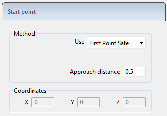 Use the Start point page to define the location of the tool at the start of the toolpath.