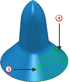 Use the Radial finishing page to create a 2D radial pattern within a boundary which is then projected onto the model. This pattern is then machined.