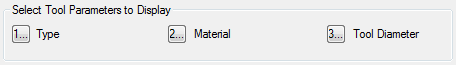 Select Tool Parameters To Display — Use these headers to specify which tool parameters you want to be displayed in the Master Tools list box area of this dialog. To select the parameters you want to use, click the 1, 2 and 3 buttons to display the Select Tool Parameter dialog. If required, you can also apply a range to a parameter. For example for the Tool Diameter parameter, you could specify that you want to display only those tools that have a tool diameter between 0.5 and 1.0.