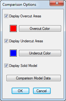 Use the Comparison Options dialog to specify details of how you want PartMaker to compare the finished part shown in the Simulation window against a solid model.