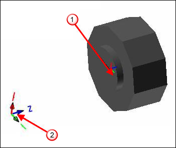 The orientation of the solid model relative to the three coordinate axes should be the same as its expected orientation in the Machine Coordinate System. The example below shows an XY turret that will perform a tool index about the Z-axis.