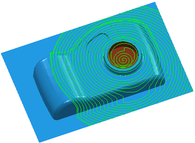 Use the Spiral finishing page to specify settings for a 2D spiral pattern within a boundary, which is projected onto the model. This pattern is then machined.