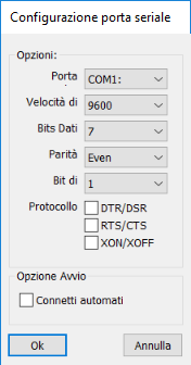 Viene visualizzata la finestra di dialogo dei parametri.