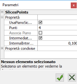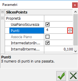 Ogni metodo di rilevamento contiene diversi parametri che determinano il numero di punti rilevati necessari per misurare un elemento, il numero di sezionamenti nel percorso sonda e così via. Utilizzare la finestra di dialogo Parametri per visualizzare o modificare i valori di default per il metodo al momento selezionato.