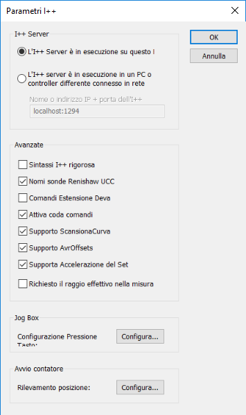 - Fare clic su Parametri. Viene visualizzata la finestra di dialogo Parametri I++.