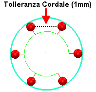 Cordale - Il parametro ChordalTolerance controlla il numero di punti sonda specificando la distanza massima a cui può trovarsi una corda tra due punti sonda rispetto alla circonferenza di un cerchio.