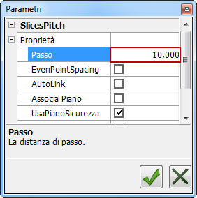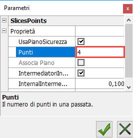 È possibile modificare il numero di sezionamenti e punti incrementando e riducendo i valori di conteggio nella finestra di dialogo Parametri .