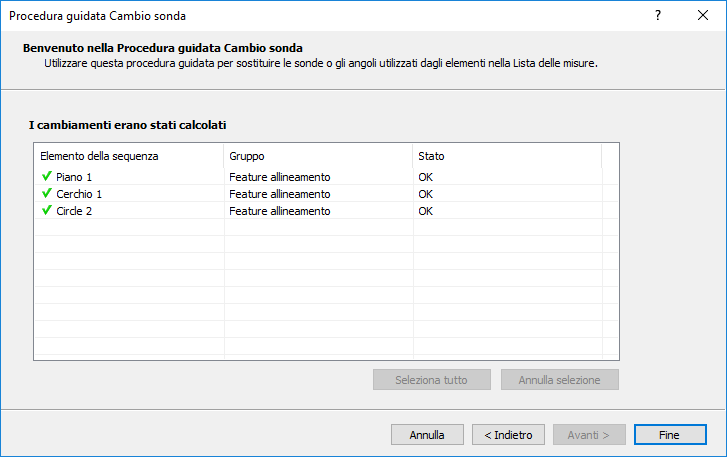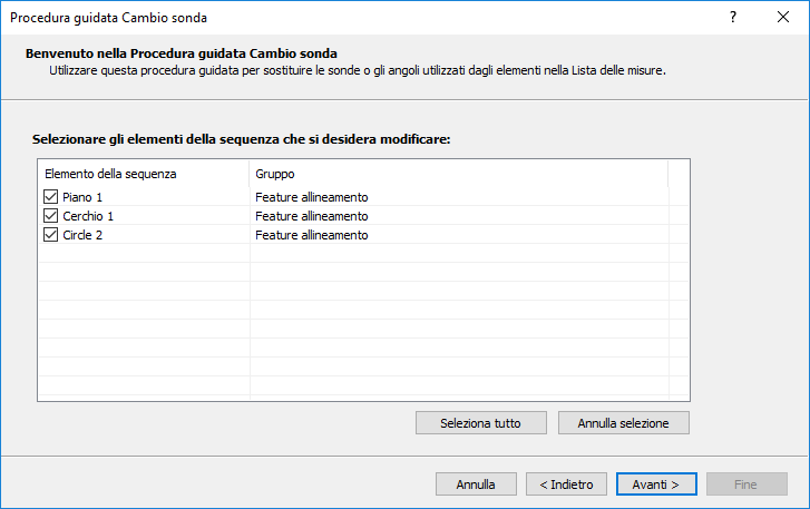 - Fare clic su Avanti. La Procedura guidata elenca gli elementi della sequenza che utilizzano l'angolo sonda corrente.