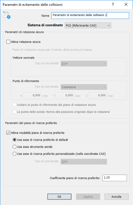 Fare clic sulla scheda Home > pannello Percorso sonda > Collega > Parametri di evitamento delle collisioni per visualizzare la finestra di dialogo Parametri di evitamento delle collisioni.