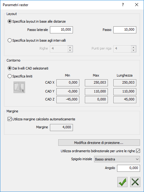 - Selezionare il metodo Raster e fare clic sul pulsante Parametri