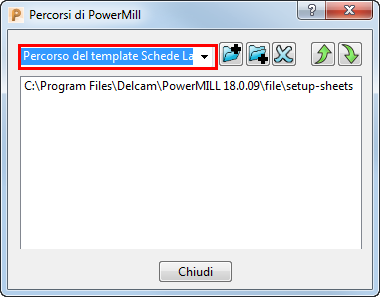 - Nella finestra di dialogo PowerMill, dall'elenco, selezionare Percorso del template schede lavorazione. In questo modo viene visualizzato il percorso al template selezionato in quel momento.