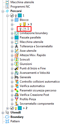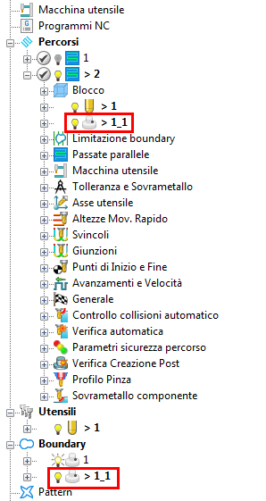 La boundary non è più visualizzata nel ramo Boundary dell'Explorer. É invece visualizzata nel ramo specifico del percorso utensile dell'Explorer.