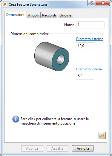 Diametro interno — Inserire un valore per specifcare il diametro interno della feature.
