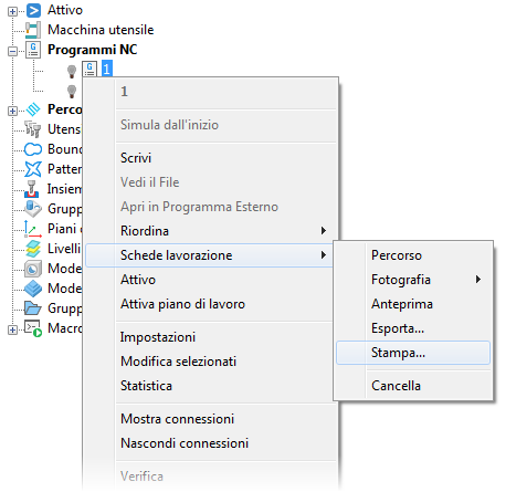 Quando si esegue la stampa delle schede di lavorazione, queste vengono scritte in un unico file denominato print.html nella sottocartella SetupSheets_files/project_sheets della cartella di progetto di PowerMill.