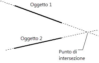 Il punto di intersezione di due linee che non si incrociano è mostrato qui di seguito.