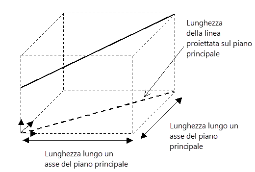 Una linea è misurata da una proiezione sul piano principale, visualizzata nell'immagine seguente.
