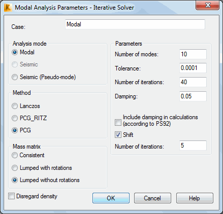 Mass matrix type (lumped with rotations or consistent) and number of modes. Precision of calculations depends on Number of Modes.