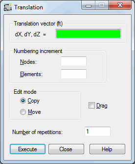 Note: You cannot perform translation on structure elements or nodes until you select them.