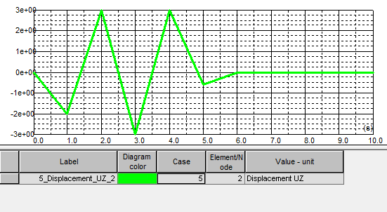 After defining diagrams and transferring them to the Presented diagramspanel, click Apply to display selected diagrams in a window. An example of a diagram for a time history analysis case is in the following image.