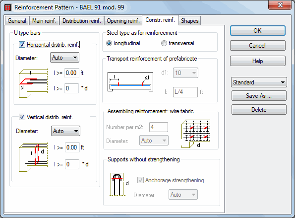 The assembling reinforcement of wire fabrics is a reinforcement that can be disregarded in calculations. It is used only to assure proper reinforcement stiffness in wire fabrics. You can also determine the number of pins per m2 of a deep beam and define their diameter.