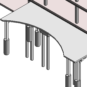 La visualizzazione del modello analitico varia in base al modello di progetto, al modello di vista, ai parametri di vista e agli stili degli oggetti. Il modello di progetto dell'analisi strutturale contiene due viste di pianta analitiche strutturali e una vista analitica 3D.