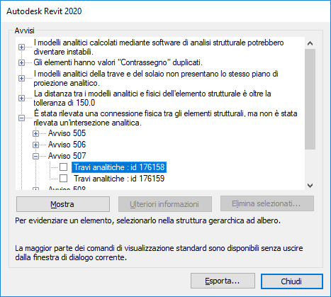 Avviso di esempio: elemento analitico senza i parametri di struttura