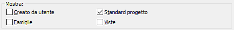 Standard di progetto. Contiene tutte le impostazioni relative all'intero progetto, ad esempio stili di linea e retini. Non è consentito rinominare o eliminare i workset degli standard di progetto.
