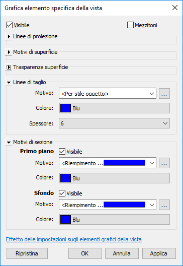Sostituzioni visibilità/graficaLinee di proiezione/Linee di taglio