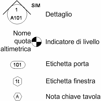 I simboli di annotazione possono essere utilizzati in viste e legende per l'indicazione dei dettagli di progettazione.