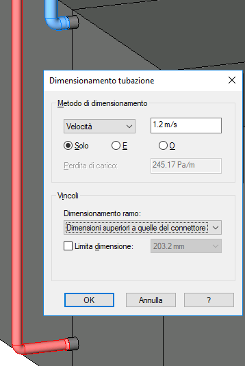 Le immagini seguenti mostrano i risultati dei vari metodi di dimensionamento delle tubazioni di un sistema idronico.