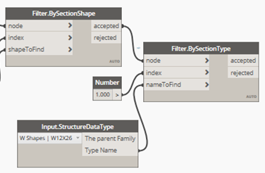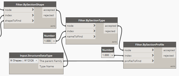 È possibile utilizzare il nodo di Dynamo Filter.BySectionProfile per verificare il profilo di sezione utilizzato per l'elemento dei dati della struttura.
