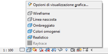 Per specificare uno sfondo per una vista 3D, nella barra dei controlli della vista, fare clic sull'icona Stile visualizzazione e scegliere Opzioni di visualizzazione grafica.