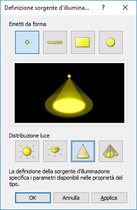 Viene visualizzata la finestra di dialogo Definizione sorgente d'illuminazione.