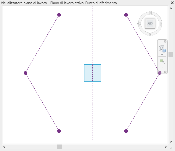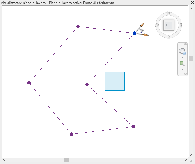 Il visualizzatore piano di lavoro è disponibile in tutte le viste del modello nell'ambiente di progetto. L'orientamento di default è il piano di lavoro che era attivo nell'ultima vista attiva.