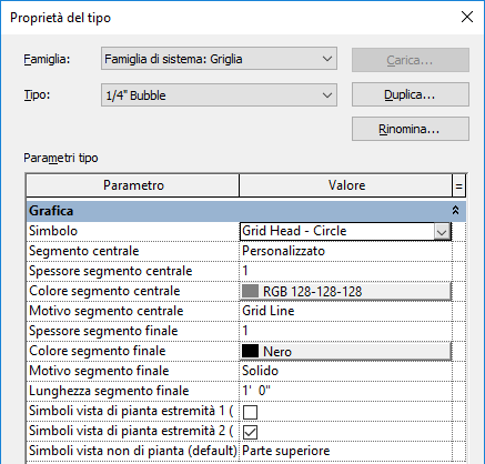 È possibile personalizzare le linee di griglia modificando le proprietà del tipo per il tipo di griglia.