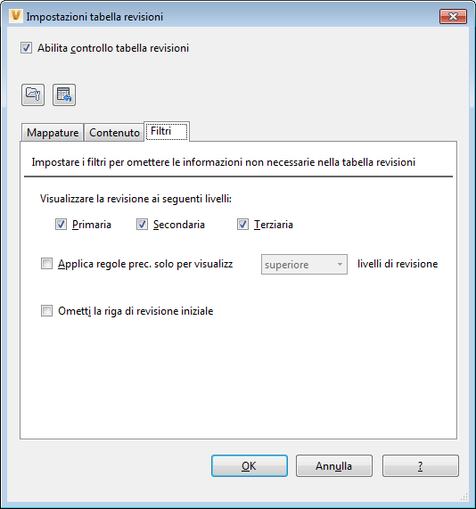 Nella scheda Contenuto, è possibile applicare il tipo di informazioni visualizzate nella tabella revisioni. ![]() |