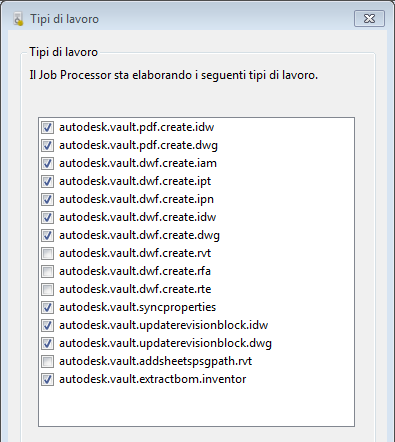 È possibile visualizzare i tipi di lavori gestiti dal Job Processor nella finestra di dialogo Tipi di lavori.