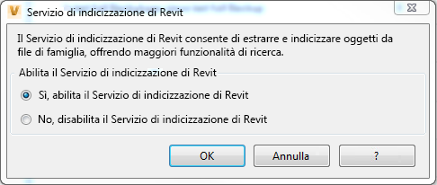 È inoltre possibile selezionare Servizio di indicizzazione di Revit dal menu Azioni.