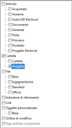 Una proprietà definita dall'utente può anche essere associata a specifiche sottoclassi di entità. Ad esempio, una proprietà definita dall'utente può essere creata in modo che solo possa essere utilizzata solo dalle cartelle di progetto.
