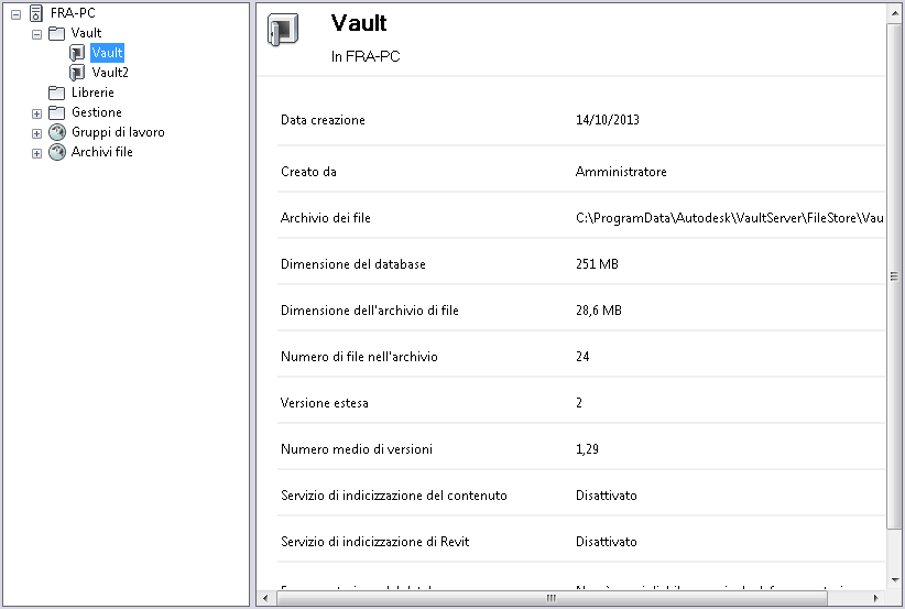 - Il numero di versioni medio per tutti i file contenuti nel Vault