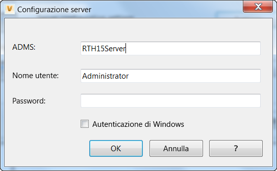 Amministrazione. Selezionare la casella di controllo Autenticazione di Windows per utilizzare le credenziali Windows dell'utente.